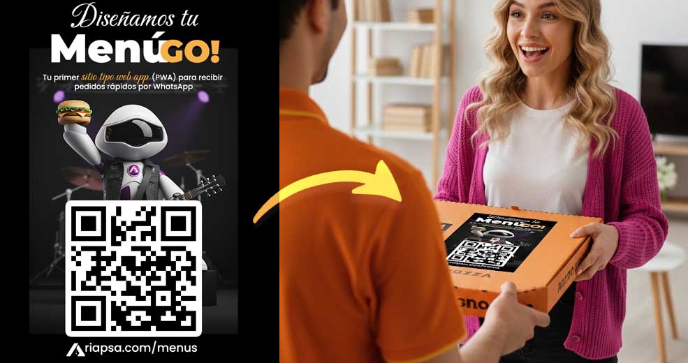 - Menús impresos: añade el QR en la parte inferior o al reverso, indicando que es para pedidos a domicilio.