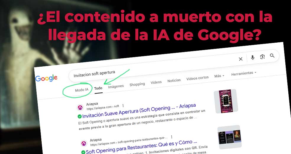 Ahora, al realizar una búsqueda, aparece un nuevo apartado: “Modo IA”, que se muestra incluso antes que las pestañas clásicas como Todo, Imágenes, Vídeos, Shopping, Noticias o Vídeos cortos. Esto ha generado miedo: ¿será que Google priorizará siempre la respuesta automática de la IA y dejará en segundo plano los blogs?