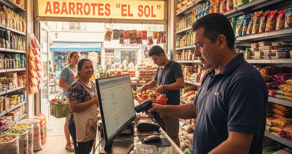 Software moderno especializado en tiendas de abarrotes como SIFO POS, Alegra POS o HIOPOS, que ofrecen control de inventario, reportes de ventas y compatibilidad con múltiples formas de pago.