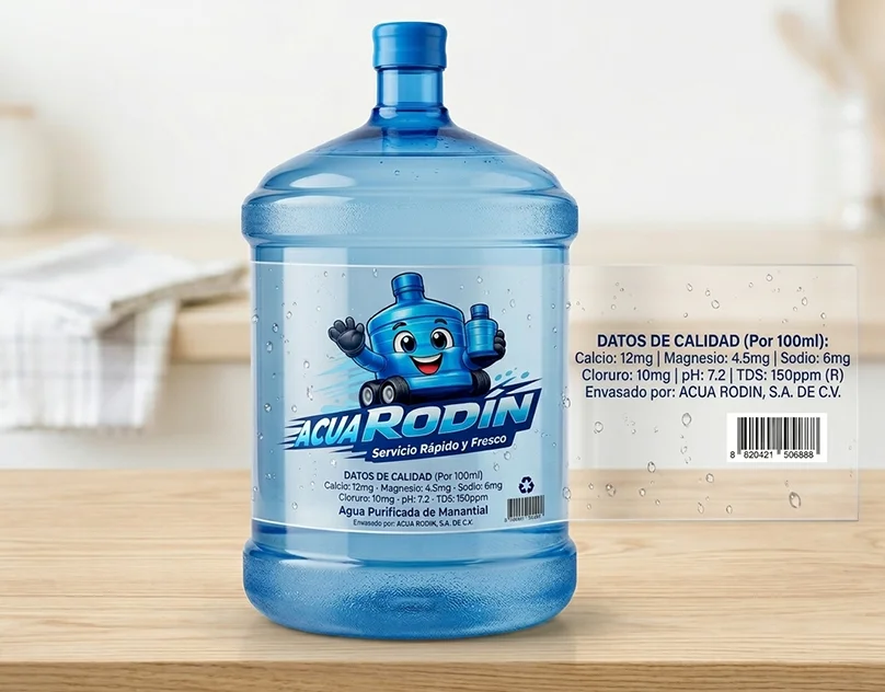 - Etiquetas en garrafones y botellas