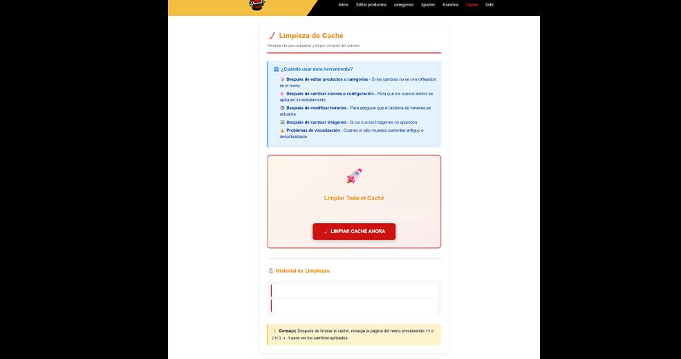 - Un solo botón: "🧹 LIMPIAR CACHÉ AHORA"